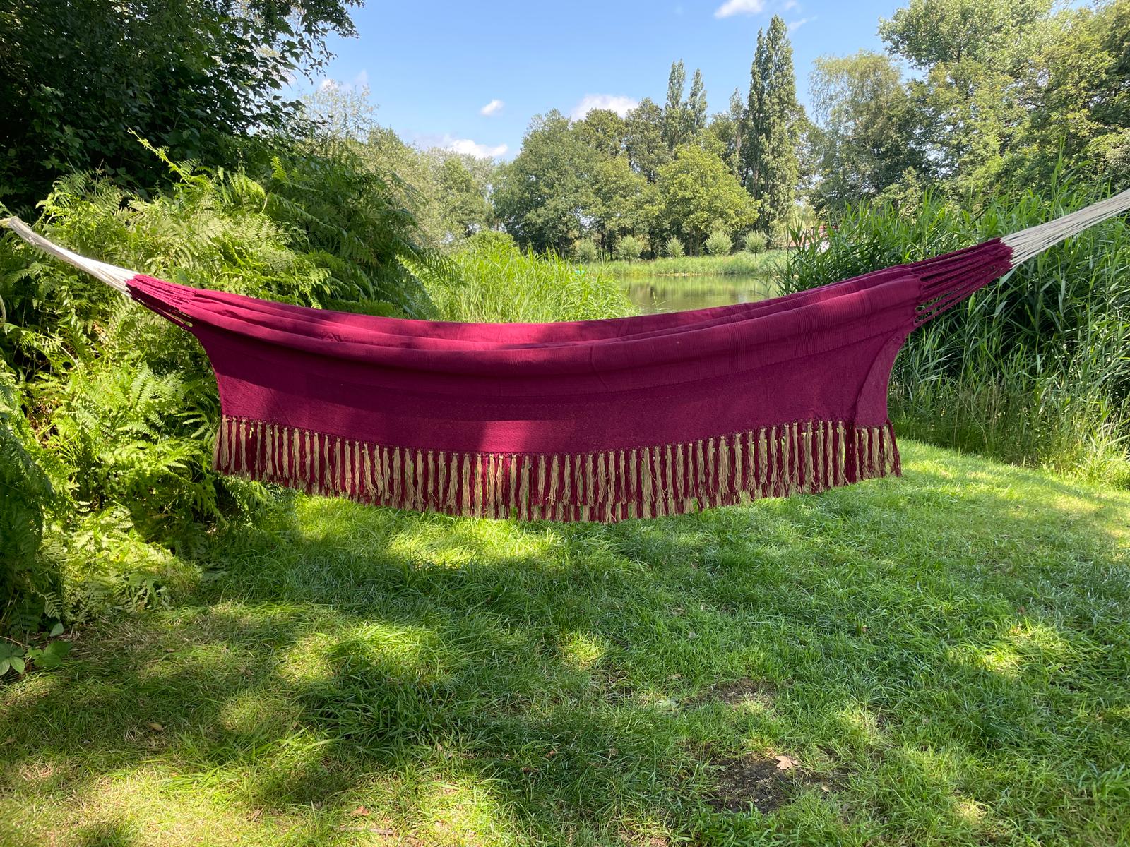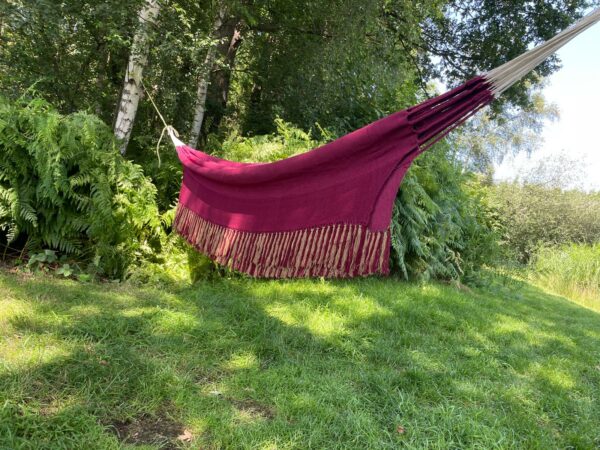 Hangmatten San Jacinto is er trots op met zo een fantastische groep weefsters te kunnen werken en dat al 25 jaar tot wederzijds genoegen. Nergens in Colombia vindt men dit type hangmat in deze kwaliteit en in deze grote maatvoering. De hangmatten worden stuk voor stuk met de hand gemaakt en dat maakt ze allen unique. Elke hangmat is anders, zowel wat betreft de kleuren, de geometrische figuren als ook de kleur van de franje. Het zijn stevige hangmatten, die zowel voor een persoon als twee persoons te bestellen zijn. Wij raden wel aan om ze niet bloot te stellen aan fel zonlicht of regen. Onze weefsters verven zelf de ongebleekt katoenen garen, waardoor ze een heel intense kleurstelling hebben. Daardoor zijn deze hangmatten heel decoratief en geven zij warmte aan elk interieur of terras.